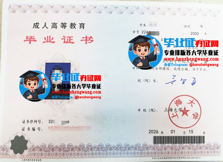 [本科毕业证样本] 排版制作上海大学成人毕业证,上海大学函授毕业证样本 日期:2026-03-25 09:56:49 点击:159 好评:0