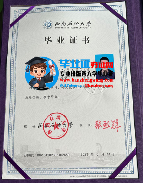 [本科毕业证样本] 专业制作西南石油大学毕业证,排版制作西南石油大学毕业证 日期:2026-03-22 10:52:43 点击:148 好评:0